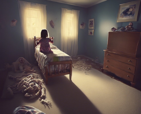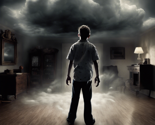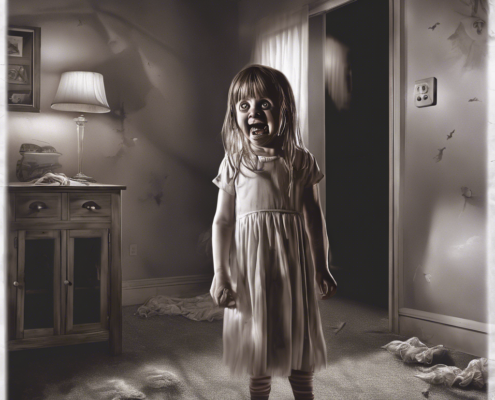 När natten sänker sin mörka mantel över det tysta hemmet, blir vardagsljuden plötsligt övergivna till skrämmande symfonier av övernaturliga störningar. Knarrande golvplankor skriker ut i kuslig protest, som om huset självt försöker kommunicera en mörk hemlighet som den håller gömd. En kall, klibbig dimma sveper in genom springor och sprickor, förvandlar vanliga föremål till groteska skuggspel av sig själva.