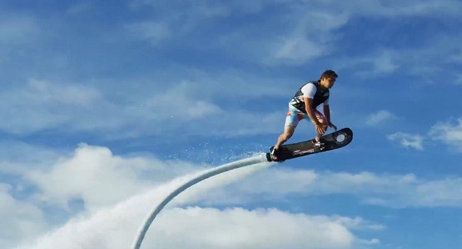 En futuristisk ny produkt finns snart i butikerna. Ett franskt vattenskoterföretaget presenterade en vattenlevande hoverboard, snurra över vågorna och genom luften i hastigheter upp till 36kmh. Den kan flyga så högt som 4.8 meter ovanför vattenytan och är designad för att ta extrema vattensporter till nästa nivå.