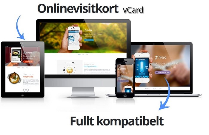 Responsive – Betyder att en hemsida eller ett visitkort är kompatibelt med alla skärmar. Exempelvis laptop, datorer, smartphones och surfplattor. Onlinevisitkortet ser lika proffsigt ut på alla skärmar och upplösningar.